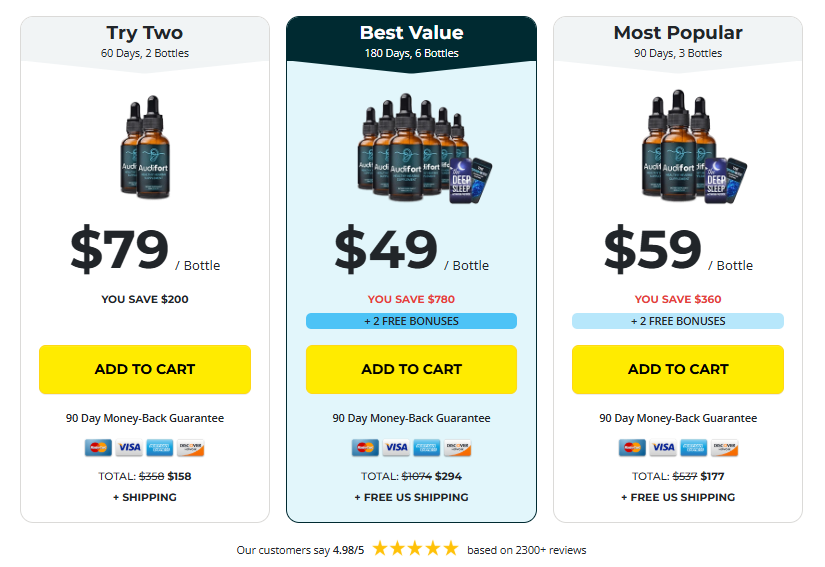 Audifort is currently offered at a promotional price of $49 per bottle, making it one of the most affordable options in the premium hearing support category. Each bottle contains a full month’s supply of carefully selected natural ingredients, blended to the highest quality standards.